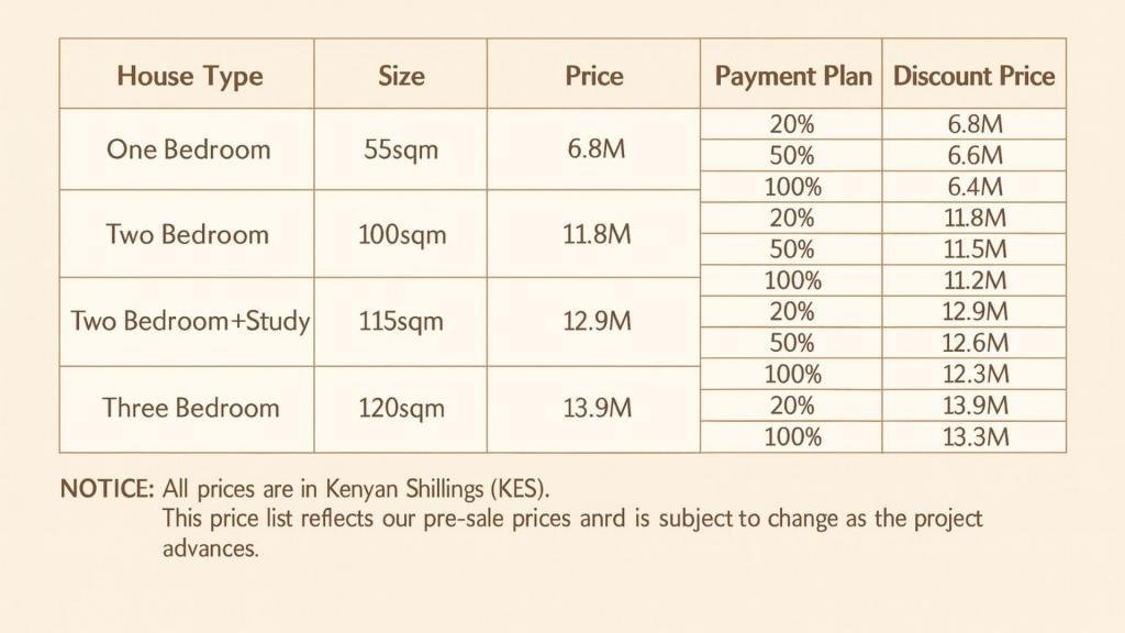 Available Unit Types, Sizes & Prices 1 Bedroom Apartment