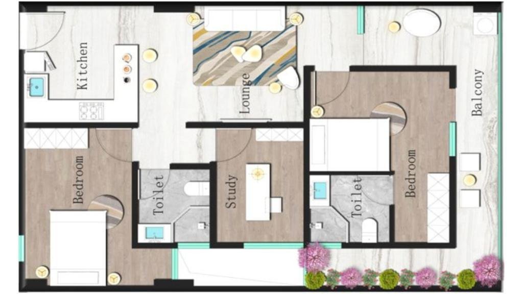 2 Bedroom + Study (115 sqm)